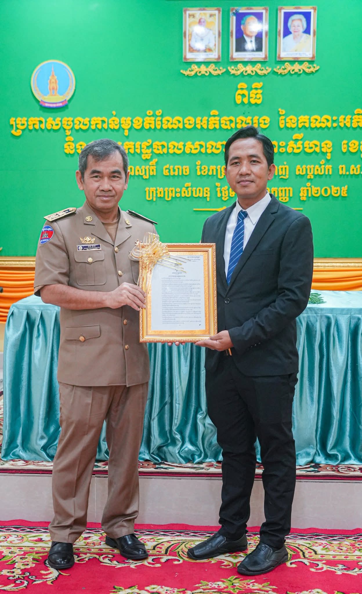(ខេត្តព្រះសីហនុ): នារសៀលថ្ងៃទី១១ ខែកញ្ញា ឆ្នាំ២០២៥ លោកឯម ភាព អភិបាលរងខេត្តព្រះសីហនុតំណាងដ៏ខ្ពង់ខ្ពស់ ឯកឧត្តមម៉ាង ស៊ីណេត អភិបាលនៃគណៈអភិបាលខេត្ត បានអញ្ជេីញចូលរួមពិធីប្រកាសចូលកាន់មុខតំណែងអភិបាលរង នៃគណៈអភិបាលក្រុងព្រះសីហនុ និងលោកនាយករដ្ឋបាលសាលាក្រុងព្រះសីហនុ ស្ថិតនៅសង្កាត់៤ ក្រុងព្រះសីហនុ ខេត្តព្រះសីហនុ ។