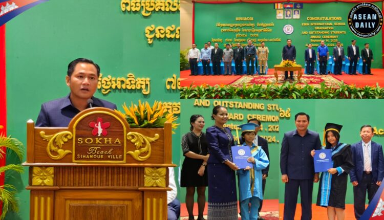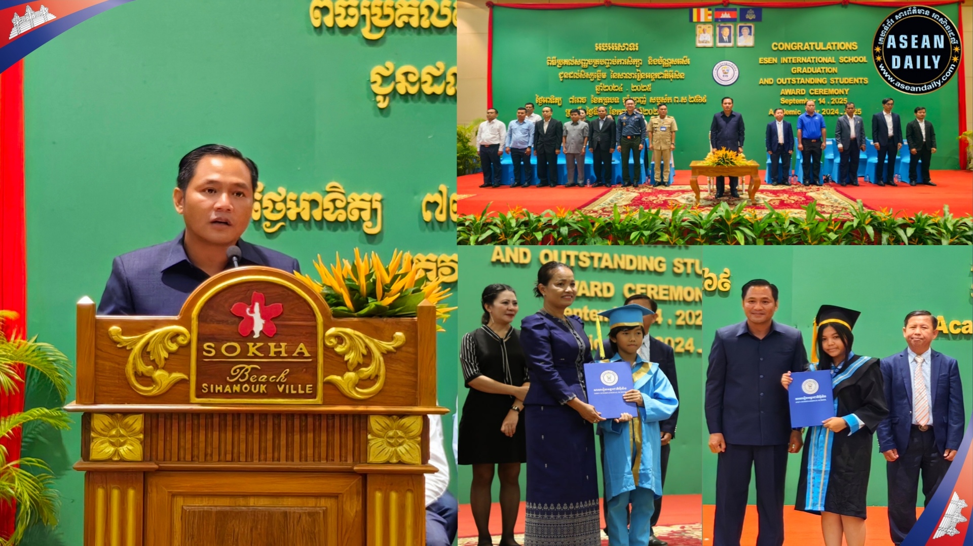 (ខេត្តព្រះសីហនុ)៖ លោក សាមុត សុធារិទ្ធ អភិបាលរង នៃ​គណៈ​អភិបាល​ខេត្តព្រះសីហនុ តំណាងដ៏ខ្ពង់ខ្ពស់ ឯកឧត្តម ម៉ាង ស៊ីណេត អភិបាលខេត្តព្រះសីហនុ បានអញ្ជើញជាអធិបតីក្នុងពិធីប្រគល់សញ្ញាបត្របញ្ចប់ការសិក្សា និងប័ណ្ណសរសើរជូនដល់សិស្សឆ្នើមនៃសាលារៀនអន្តរជាតិអ៊ីសិន​ ក្នុងឆ្នាំសិក្សា​២០២៤-២០២៥​ នារសៀលថ្ងៃទី១៤ ខែកញ្ញា ឆ្នាំ២០២៥​ នេះ នៅ​សណ្ឋាគារឆ្នេរសុខា​ ស្ថិតក្នុងសង្កាត់៤ ក្រុងព្រះសីហនុ​ ក្នុងនោះក៏មានវត្តមានលោកស្រីប្រធានមន្ទីរអប់រំ​ យុវជននិងកីឡា​ អភិបាលរង​ក្រុង​ នាយកសាលា លោក-លោកស្រី​មន្ត្រី​រាជការ​ និងអាណាព្យាបាលសិស្សានុសិស្សយ៉ាងច្រេីនកុះករ។