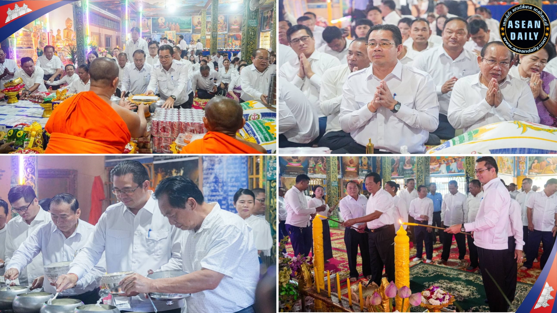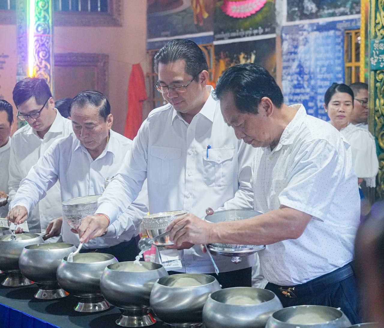 បន្ទាប់ពីធ្វើកិច្ចបូជា ផ្កាទៀនធូក ចំពោះព្រះពុទ្ធរូបព្រះ សម្មាសម្ពុទ្ធ និងនមសកា ព្រះរតនត្រ័យ ទៅតាមគន្លង ព្រះធម៌ព្រះសម្មាសម្ពុទ្ធរួច ថ្នាក់ដឹកនាំ ព្រមទាំងមន្ត្រីរាជការ បានរាបបាត វេរប្រគេននូវទ័យ្យទានវត្ថុដល់ព្រះសង្ឃ សម្រាប់ ប្រើប្រាស់ទៅតាមពុទ្ធានុញ្ញាត្តិ ព្រមទាំងបានឧទ្ទិស កុសលផលបុណ្យ ជូនឯកឧត្តម លោកជំទាវ លោកយាយ លោកតា ពុទ្ធបរិស័ទ មន្ត្រីរាជការ និងប្រជាពលរដ្ឋក្នុងខេត្តព្រះសីហនុទាំងមូល សូមទទួលបាននូវមគ្គផល កុសលផល បុណ្យ តាមសទ្ធាជ្រះថ្លារៀងៗខ្លួន និងសូមជួបប្រកបតែនូវ ពុទ្ធពរ ទាំង៥ប្រការ គឺអាយុ វណ្ណៈ សុខៈ ពលៈ និង បដិភាណៈ កុំបីឃ្លៀងឃ្លាតឡើយ។