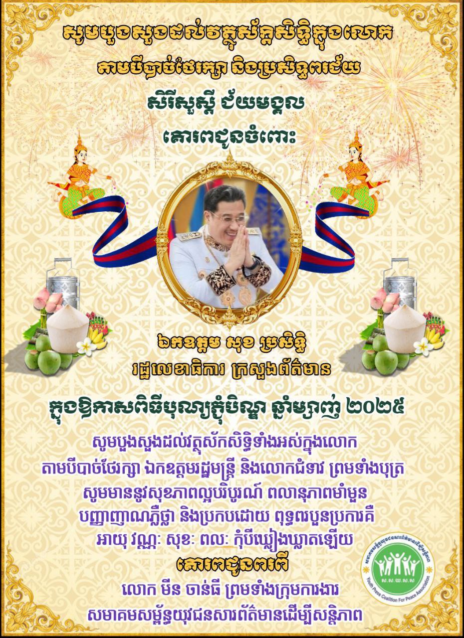 សូមគោរពជូនពរពីខ្ញុំបាទ មីន ចាន់ធី ព្រមទាំងក្រុមការងារសមាគមសម្ព័ន្ធ យុវជនសារព័ត៌មានដើម្បីសន្តិភាព🙏