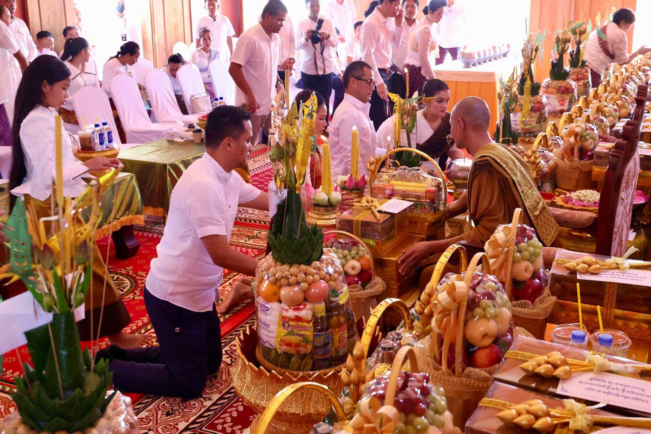នៅព្រឹកថ្ងៃសៅរ៍ ទី២០ ខែកញ្ញា ឆ្នាំ២០២៥ នេះ ឯកឧត្តមអភិសន្តិបណ្ឌិត ស សុខា ឧបនាយករដ្ឋមន្ត្រី រដ្ឋមន្ត្រីក្រសួងមហាផ្ទៃ និងលោកជំទាវសិរីកាញ្ចនពង្សធិមុត្តរាអគ្គមហាឧបាសិកាពុទ្ធសាសនូបត្ថម្ភក៍ កែ សួនសុភី ស សុខា ព្រមទាំងបុត្រាបុត្រី ឯកឧត្តម ជា សុមេធី រដ្ឋមន្ត្រីក្រសួងសង្គមកិច្ច អតីតយុទ្ធជន និងយុវនីតិសម្បទា និងលោកជំទាវ ព្រមទាំងមន្ត្រីរាជការ កងកម្លាំង និងពុទ្ធបរិស័ទ បានអញ្ជើញចូលរួមពិធីបុណ្យកាន់បិណ្ឌវេនទី១៣ នៃពិធីបុណ្យកាន់បិណ្ឌ-ភ្ជុំបិណ្ឌ នៅវត្តព្រះឥន្ទសាមគ្គីធម៌ ស្ថិតក្នុងភូមិត្រពាំងក្រពើ ឃុំក្រាំងម្កាក់ ស្រុកអង្គស្នួល។