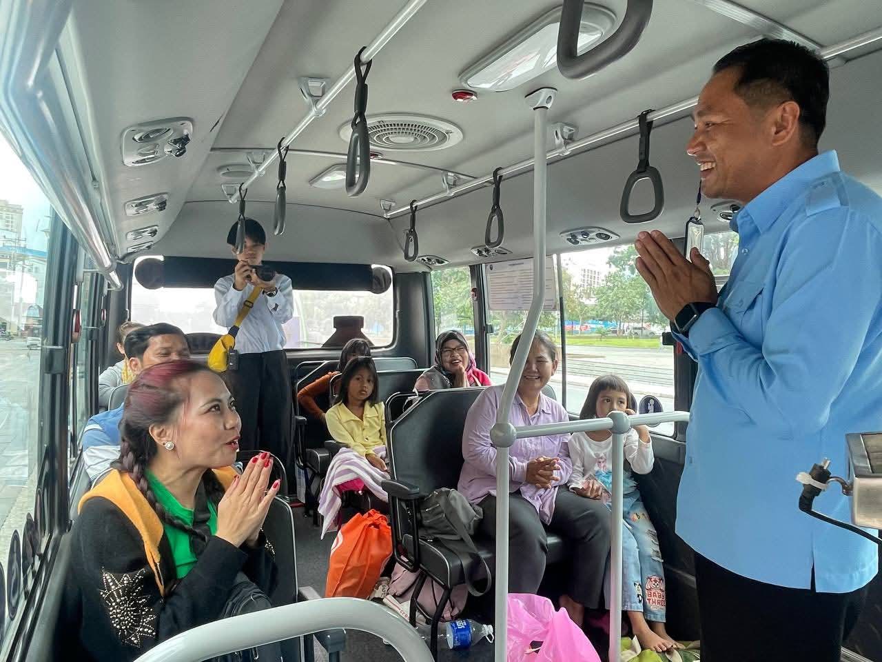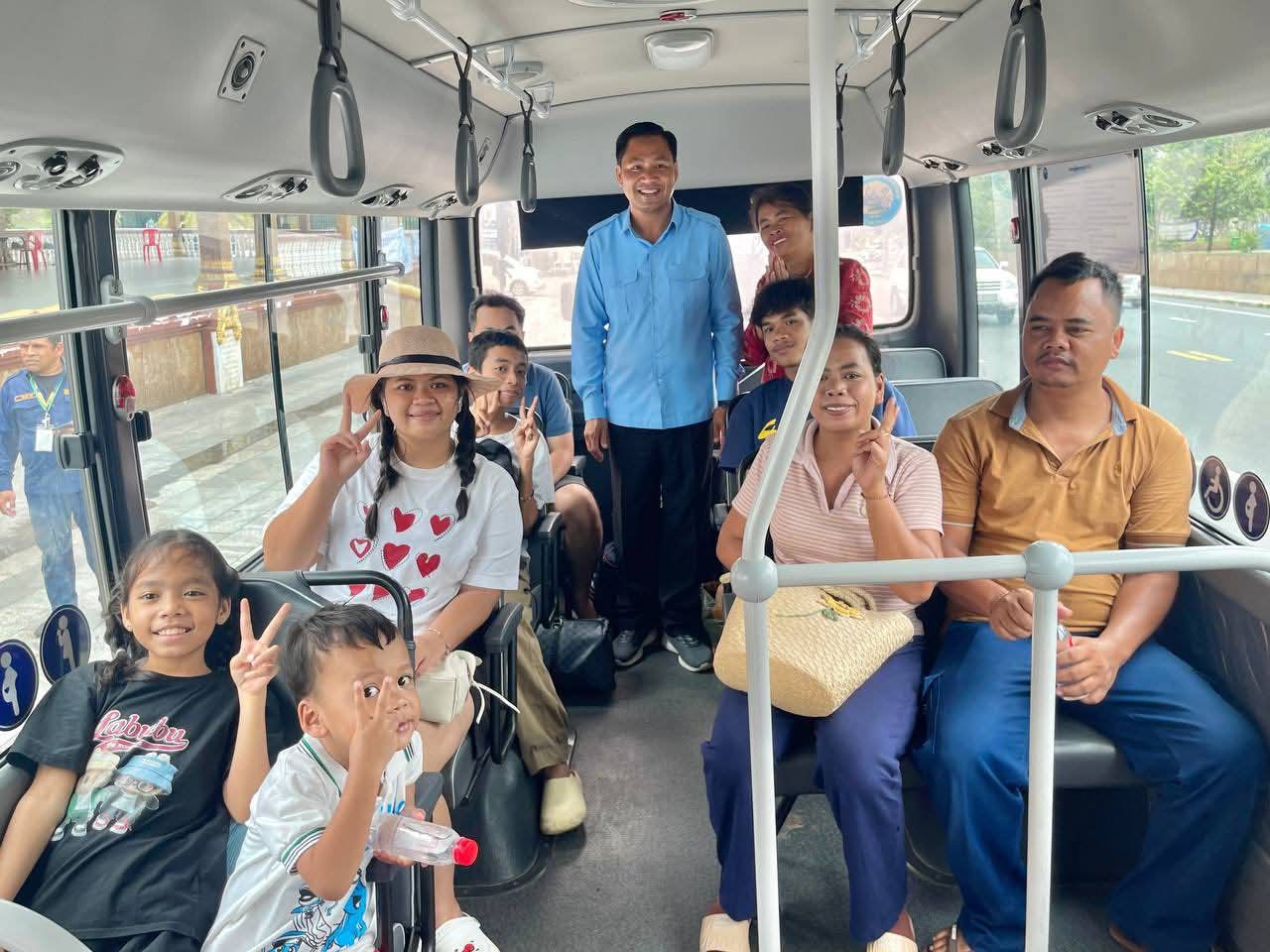 សូមបញ្ជាក់ផងដែរថា យោងតាមអនុសាសន៍ដ៏ ខ្ពង់ខ្ពស់របស់សម្តេចមហាបវរធិបតី ហ៊ុន ម៉ាណែត នាយករដ្ឋមន្ត្រីនៃព្រះរាជាណាចក្រកម្ពុជា នាថ្ងៃទី០៩ ខែកញ្ញា ឆ្នាំ២០២៥រដ្ឋបាលរាជធានីភ្នំពេញក្នុងខេត្តក្រុង នឹងរៀបចំរថយន្តក្រុងចំនួន ៥៩៧គ្រឿង សម្រាប់បម្រើសេវាដឹកជញ្ជូនសាធារណៈ ដោយមិនបង់ប្រាក់ រយៈពេល ០៦ថ្ងៃ ចាប់ពីថ្ងៃទី២០ ដល់ ថ្ងៃទី២៥ ខែកញ្ញា ឆ្នាំ២០២៥ ដើម្បីជួយសម្រួលដល់ការចំណាយរបស់បងប្អូនប្រជាពលរដ្ឋ ចំណាយរបស់បងប្អូនប្រជាពលរដ្ឋទាំងអស់ក្នុងការធ្វើដំណើរទៅលេងស្រុក កំណើត ជួបជុំបងប្អូនក្រុមគ្រួសារ ក្នុងឱកាសពិធីបុណ្យភ្ជុំបិណ្ឌ ប្រពៃណីជាតិខ្មែរ ឆ្នាំម្សាញ់ សប្តស័ក ពុទ្ធសករាជ ២៥៦៩។