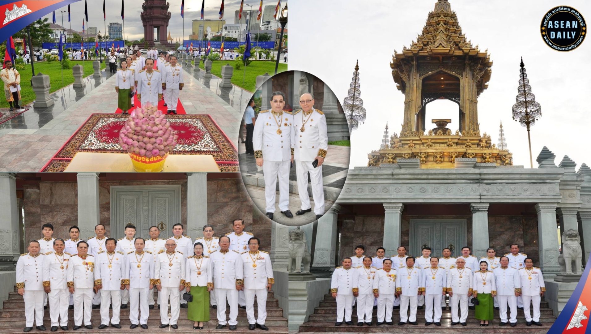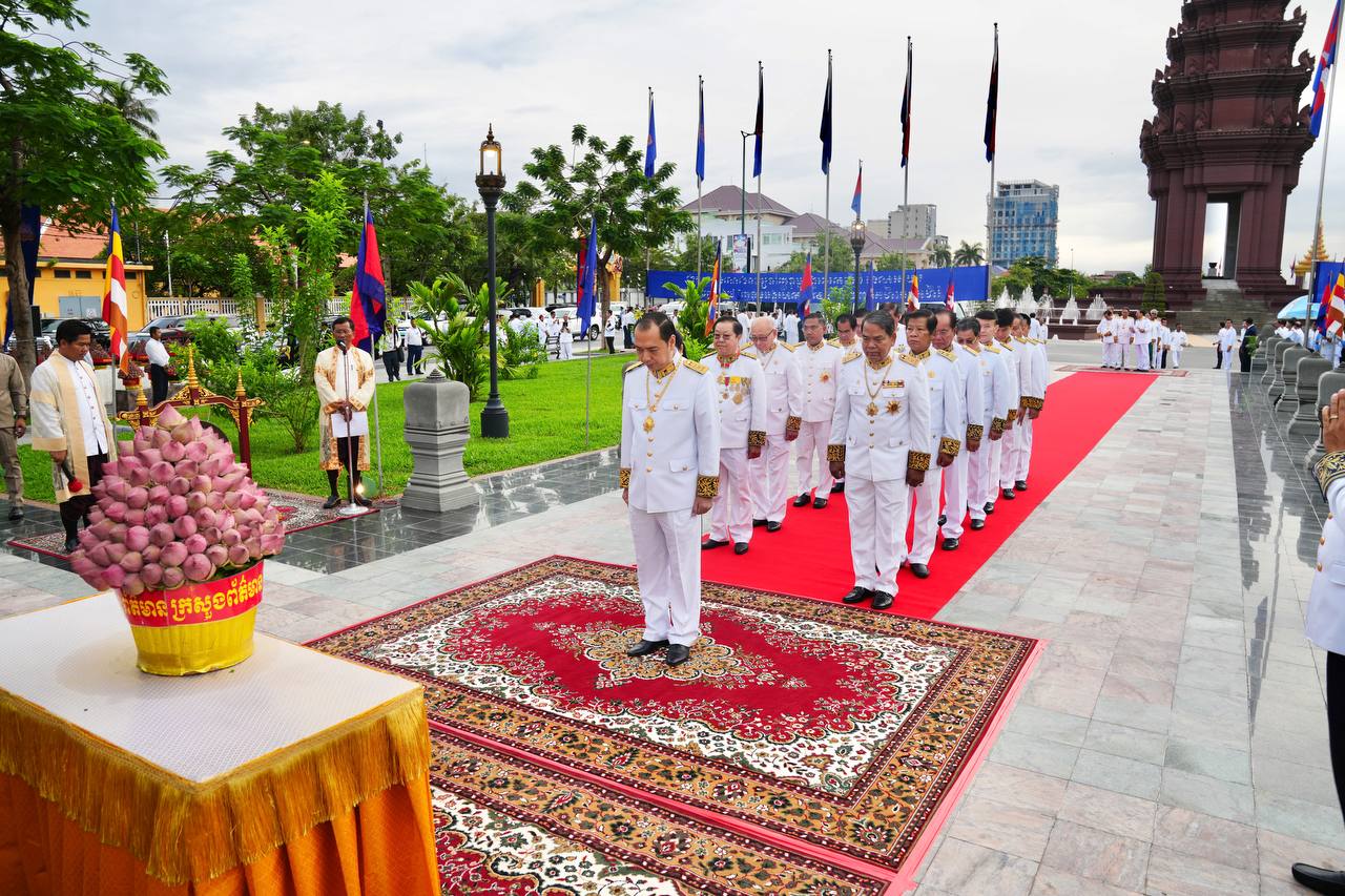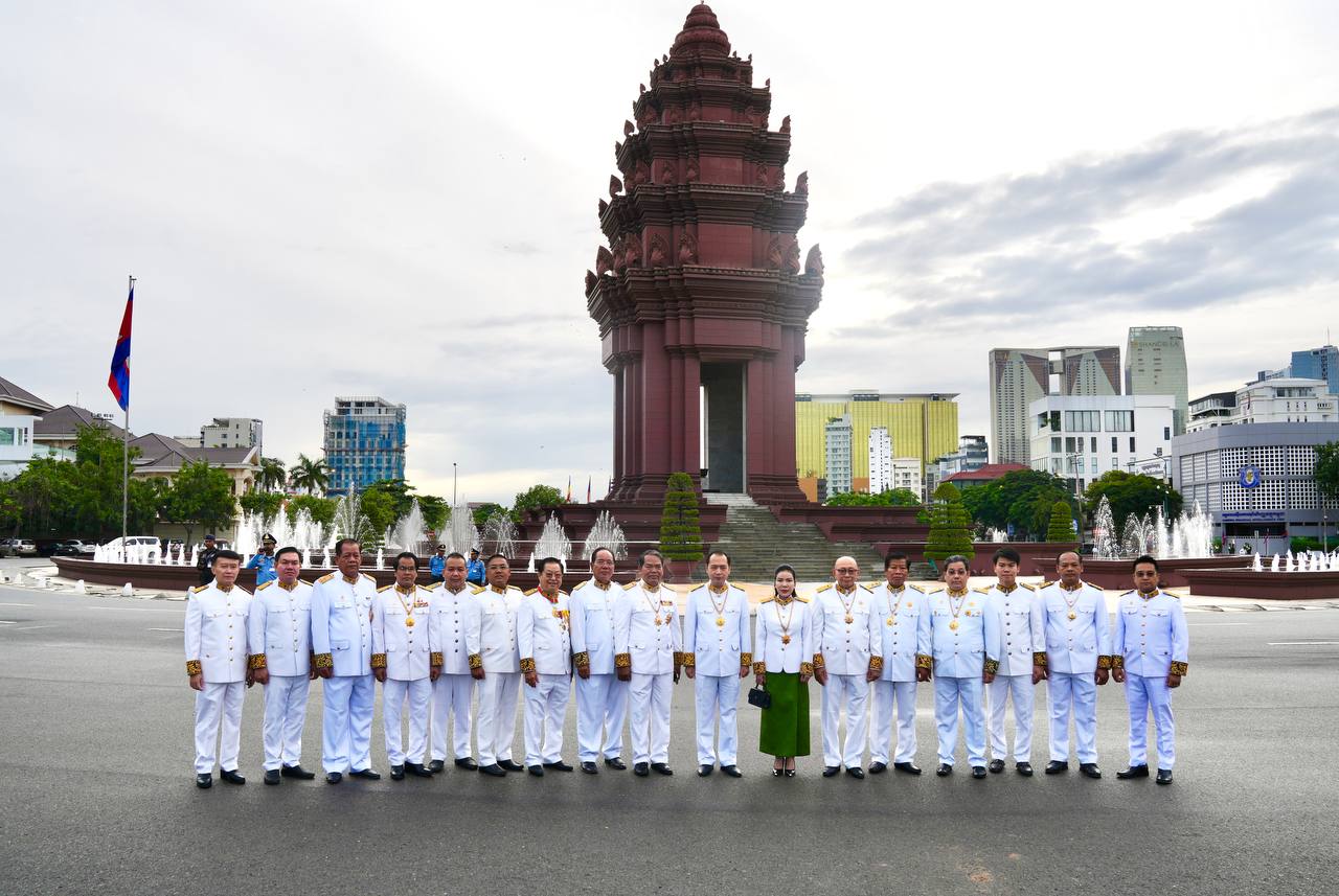 អមដំណេីរ ឯកឧត្តម នេត្រ ភក្ត្រា រដ្ឋមន្ត្រីក្រសួងព័ត៌មាន ចូលរួមដាក់ក្រពុំបិណ្ឌផ្កាឈូកគោរពរដ្ឋធម្មនុញ្ញ នៃ ព្រះរាជាណាចក្រកម្ពុជា (លើកទី១) រំលឹកខួបលើក ទី៣២ “ទិវាប្រកាសរដ្ឋធម្មនុញ្ញ” នៅនីតិបូជនីយដ្ឋាន វិមានរដ្ឋធម្មនុញ្ញ នាសួនច្បារខាងលិចវិមានឯករាជ្យ។