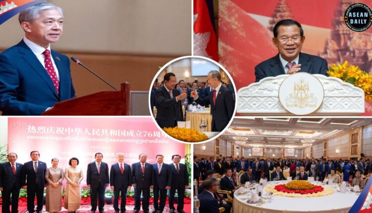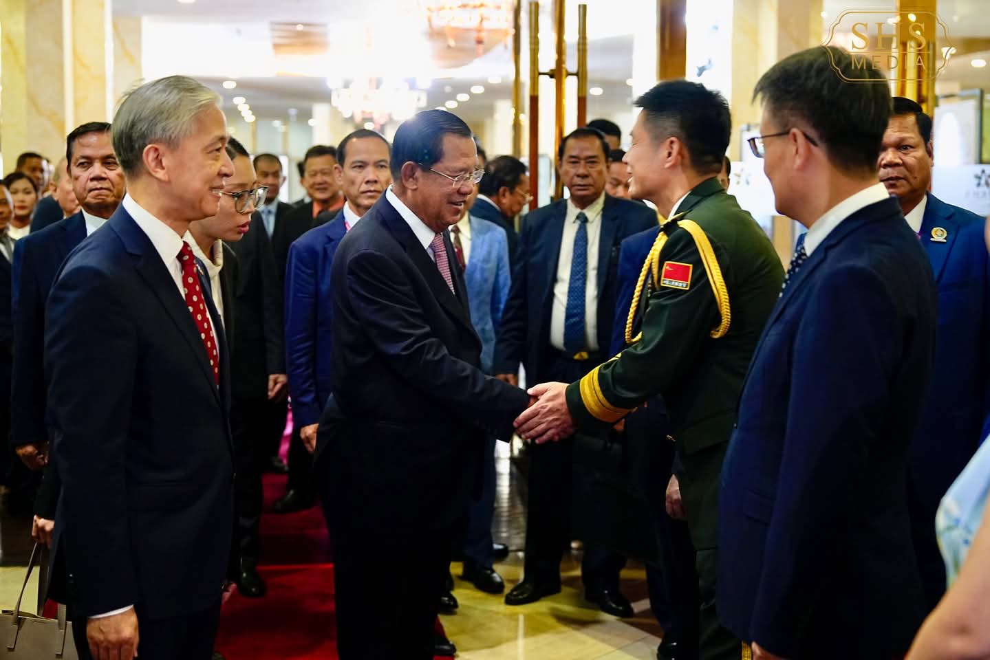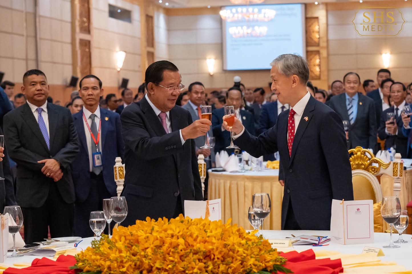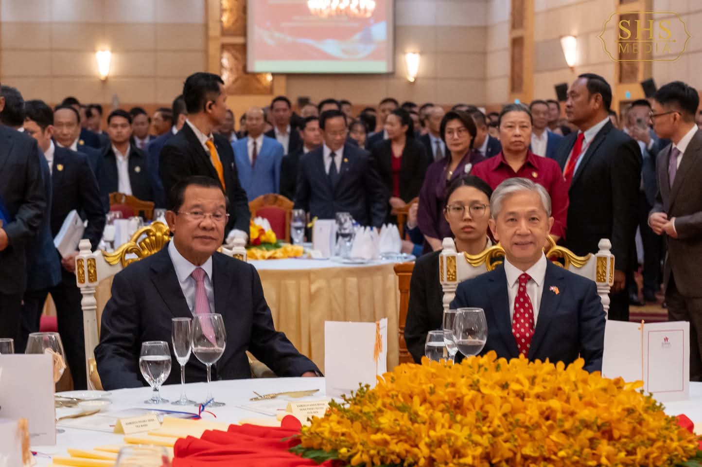 (ភ្នំពេញ): នៅល្ងាចថ្ងៃសុក្រ ៤កើត ខែអស្សុជ ឆ្នាំម្សាញ់ សប្ដស័ក ព.ស. ២៥៦៩ ត្រូវនឹង ថ្ងៃទី២៦ ខែកញ្ញា ឆ្នាំ២០២៥ សម្ដេចអគ្គមហាសេនាបតីតេជោ ហ៊ុន សែន ប្រមុខរដ្ឋស្ដីទីនៃព្រះរាជាណាចក្រកម្ពុជា បានអញ្ជើញចូលរួមក្នុងពិធីជប់លៀងអបអរសាទរខួប៧៦ នៃការបង្កើតសាធារណរដ្ឋប្រជាមានិតចិន ដែលពិធីនេះប្រារព្ធធ្វើឡើងនៅសណ្ឋាគារសុខាភ្នំពេញ។ ពិធីនេះមានការអញ្ជើញចូលរួមពីឯកឧត្តម វ៉ាង វិនពីន ឯកអគ្គរដ្ឋទូតវិសាមញ្ញ និងពេញសមត្ថភាព នៃសាធារណរដ្ឋប្រជាមានិតចិន ប្រចាំកម្ពុជា, សមាជិកព្រឹទ្ធសភា រដ្ឋសភា និងរាជរដ្ឋាភិបាល, តំណាងអង្គទូត នៃប្រទេសជាមិត្តប្រចាំកម្ពុជា ព្រមទាំងភ្ញៀវកិត្តិយសជាតិ និងអន្តរជាតិជាច្រើនរូបទៀត។