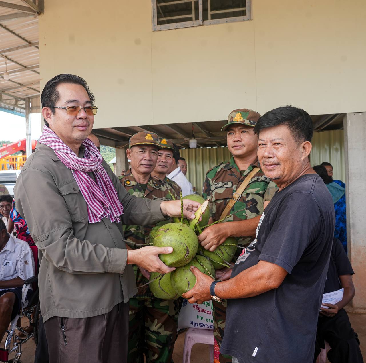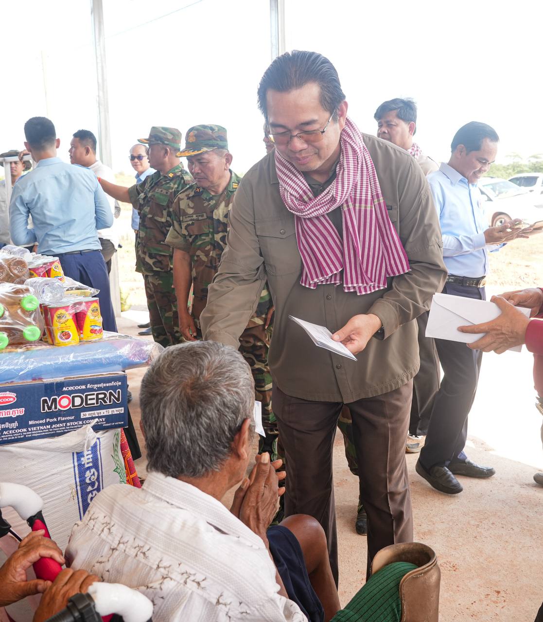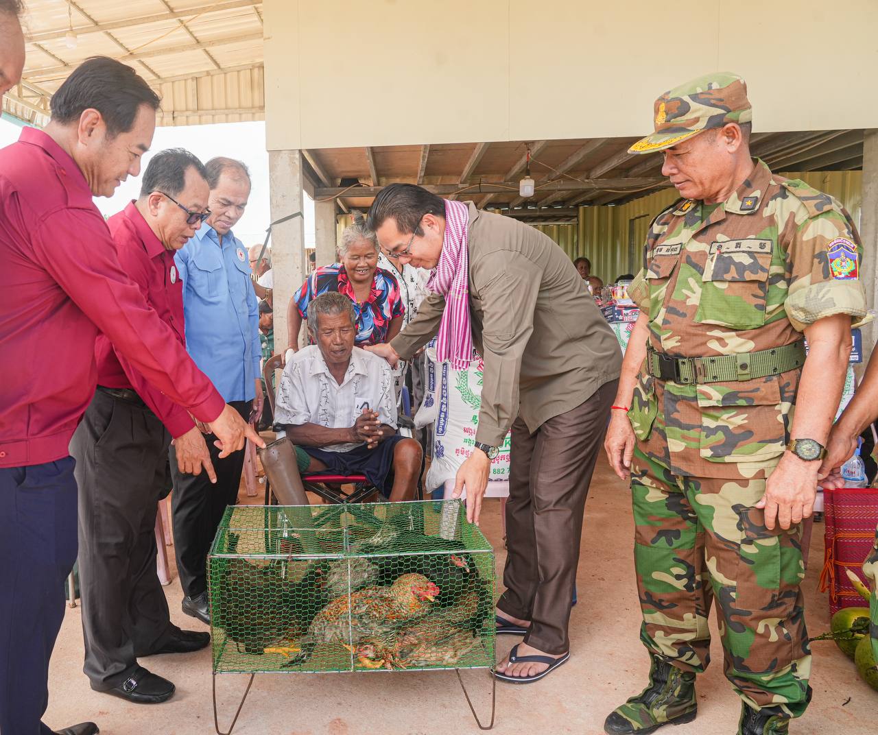 ទន្ទឹមនឹងនោះឯកឧត្តម ម៉ាង ស៊ីណេត អភិបាលនៃគណៈអភិបាលខេត្តព្រះសីហនុ ក៏បាននាំយកគ្រឿងឧបភោគបរិភោគ សត្វចិញ្ចឹម មាន់ ទា និងថវិការមួយចំនួនប្រគល់ជូនបងប្អូនដែលជាអតីតយុទ្ធជនផងដែរ.