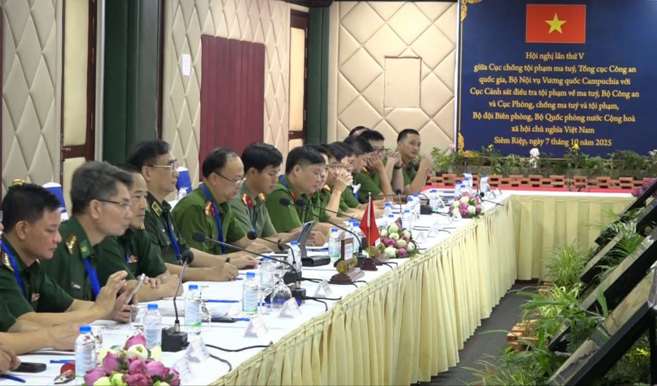 ឯកឧត្តម ឧត្តមសេនីយ៍ឯក ឃឹង សារ៉ាត់ ដឹកនាំប្រតិភូនគរបាលកម្ពុជា ប្រជុំប្រចាំឆ្នាំ២០២៥ លើកទី៥ ជាមួយនាយកដ្ឋានបង្ការប្រឆាំងគ្រឿងញៀន និងបទល្មើស នៃបញ្ជាការដ្ឋានកងទ័ពការពារព្រំដែន ក្រសួងការពារជាតិវៀតណាម និងនាយកដ្ឋានតម្រួតស្រាវជ្រាវបទល្មើសគ្រឿងញៀននៃក្រសួងនគរបាលវៀតណាម