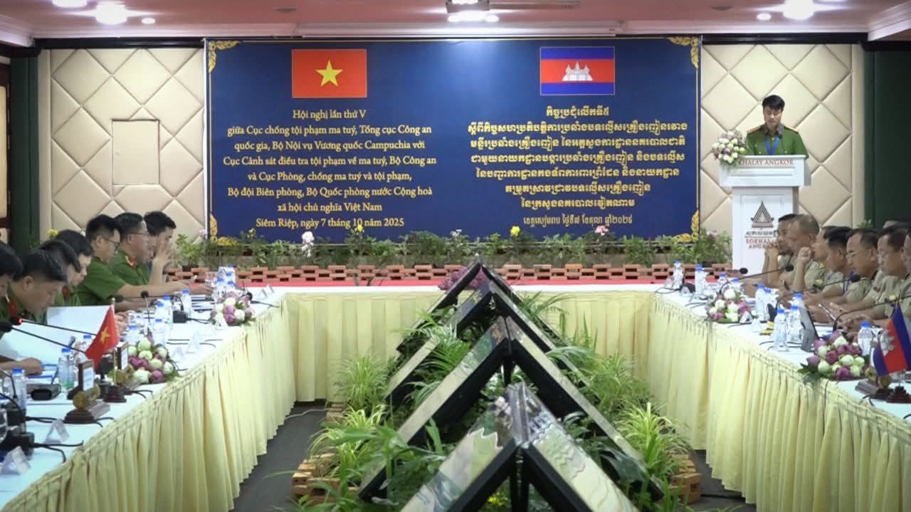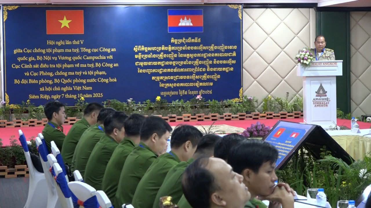ខេត្តសៀមរាប ៖ ដោយមានការអនុញ្ញាតដ៏ខ្ពង់ខ្ពស់ពី ឯកឧត្តម នាយឧត្តមសេនីយ៍ ស ថេត អគ្គស្នងការនគរបាលជាតិ ចាប់ពីថ្ងៃទី៦ ដល់ថ្ងៃទី៩ ខែតុលា ឆ្នាំ២០២៥ ឯកឧត្តម ឧត្តមសេនីយ៍ឯក ឃឹង សារ៉ាត់ នាយកមន្ទីរប្រឆាំងបទល្មើសគ្រឿងញៀន នៃអគ្គស្នងការនគរបាលជាតិ ក្រសួងមហាផ្ទៃកម្ពុជា បានដឹកនាំប្រតិភូនគរបាលកម្ពុជា ប្រជុំប្រចាំឆ្នាំ២០២៥ លើកទី៥ ជាមួយនាយកដ្ឋានបង្ការប្រឆាំងគ្រឿងញៀននិងបទល្មើស នៃបញ្ជាការដ្ឋានកងទ័ពការពារព្រំដែន ក្រសួងការពារជាតិវៀតណាម និងនាយកដ្ឋានតម្រួតស្រាវជ្រាវបទល្មើសគ្រឿងញៀន នៃក្រសួងនគរបាលវៀតណាម នៅទីក្រុងសៀមរាប ខេត្តសៀមរាប។
