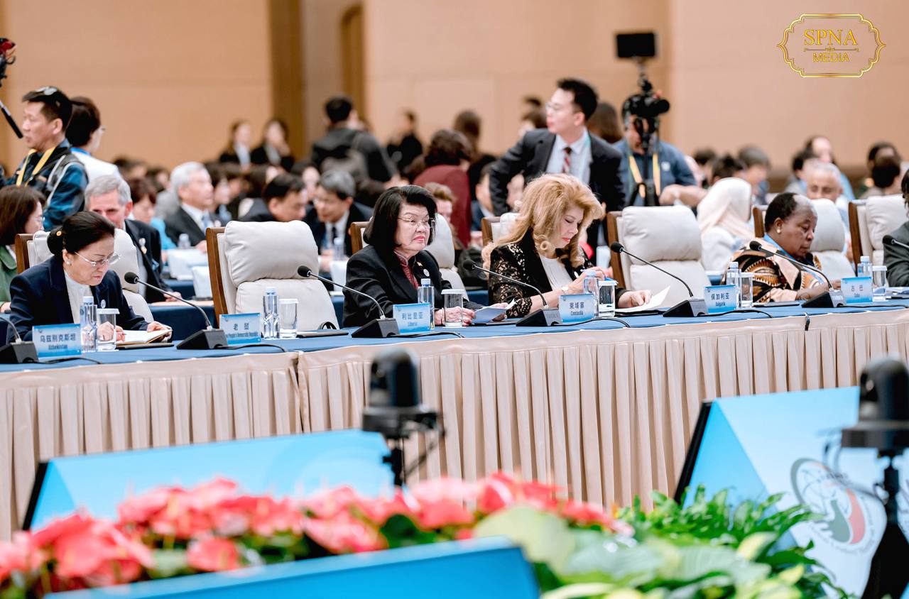 (ប៉េកាំង): សម្តេចមហារដ្ឋសភាធិការធិបតី ឃួន សុដា រឺ ប្រធានរដ្ឋសភានៃព្រះរាជាណាចក្រកម្ពុជា បានអញ្ជើញថ្លែងសុន្ទរកថាស្តីពីវឌ្ឍនភាពនៃ ការរីកចម្រើនវិស័យសមភាពយេនឌ័រ នៅក្នុង ប្រទេសកម្ពុជា ជម្រាបជូនកិច្ចប្រជុំថ្នាក់ដឹកនាំ ពិភពលោក់ ស្តីពីស្ត្រី នៅក្នុងទីក្រុងប៉េកាំង សាធារណរដ្ឋប្រជាមានិតចិន នៅរសៀល ថ្ងៃទី១៣ ខែតុលា ឆ្នាំ២០២៥នេះថា ចាប់តាំងពី ឆ្នាំ១៩៩៥មក ប្រទេសកម្ពុជាបានអនុវត្តនូវ សេចក្តីថ្លែងការណ៍ និងផែនការសកម្មភាពទីក្រុង ប៉េកាំង ដែលជាគោលការណ៍ណែនាំមួយនៅក្នុង ការអភិវឌ្ឍជាតិ។ “ស្ត្រី គឺជាឆ្អឹងខ្នងនៃសេដ្ឋកិច្ច និងសង្គម”។